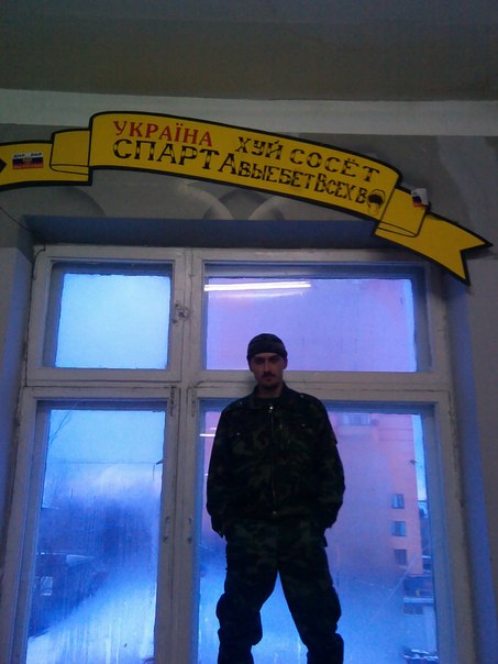 Виталий Саляров из Мончегорска — состоит в отряде «Спарта» под командованием Моторолы. Фото сделаны в здании военной кафедры Донецкого Национального технического университета (ДПИ).