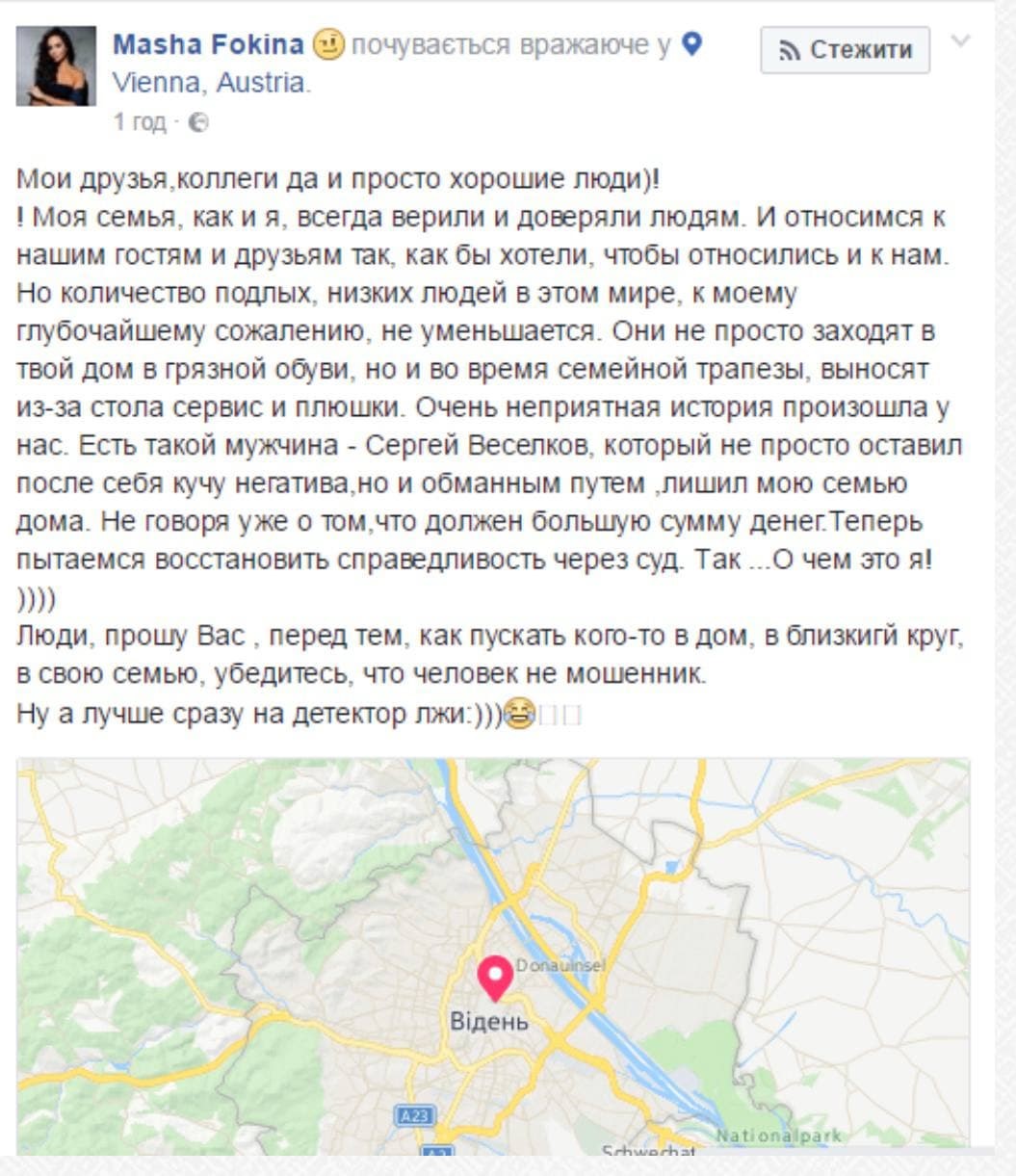 По приезду в Киев Сергей Веселков влился в столичный бомонд и даже, как рассказывают не под запись сами звезды шоу-бизнеса, помогал “тусовке” с поставкой наркотиков. В этой среде Веселков сошелся с певицей Машей Фокиной, но уже вскоре певица обвинила “успешного бизнесмена” в краже большой суммы денег из ее семьи.