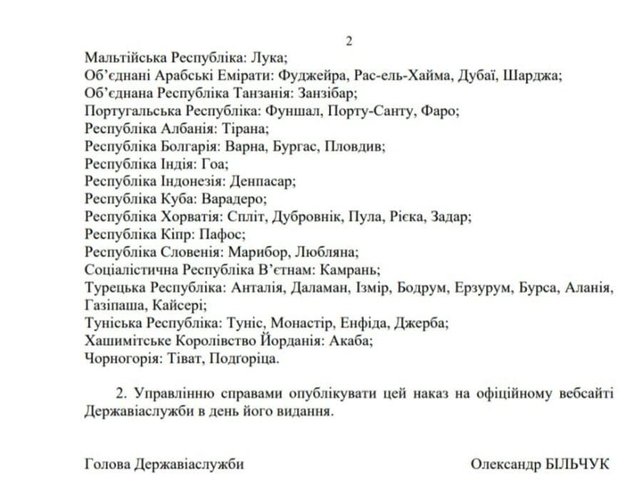 Перечень этих стран опубликован в приказе Госавиаслужбы: