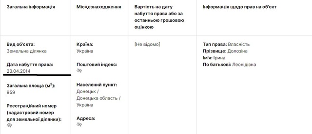 Кстати, о Донецке – в нем Ирина Леонидовна купила земельный участок. И уже тогда, когда Донецк был оккупирован.