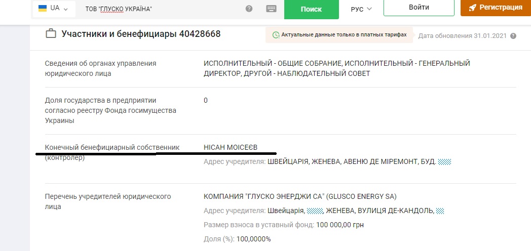 Учредителем ООО «Глуско Украина» является швейцарская Glusco Energy S.A., зарегистрированная в Женеве. Она же является собственностью Proton Energy Group, тоже зарегистрированной в Швейцарии.
