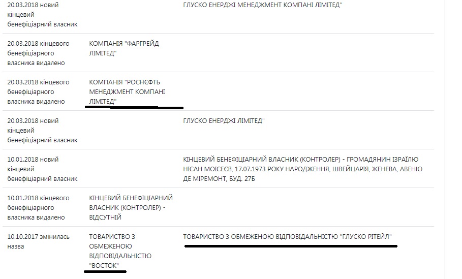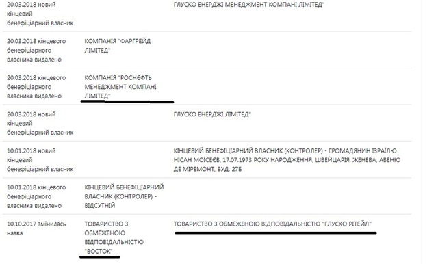 Так в 2016 году появилось ООО «Глуско Украина» и сеть АЗС «Glusco», которая на самом деле является ни чем иным, как филиалом все той же «Роснефти», отданной на «кормление» одиозному украинскому деятелю Виктору Медведчуку. Вся эта цепочка «владельцев» просто прикрывает настоящего бенефициара, хотя таковым в документах и значится израильтянин Моисеев.