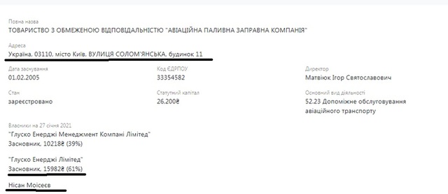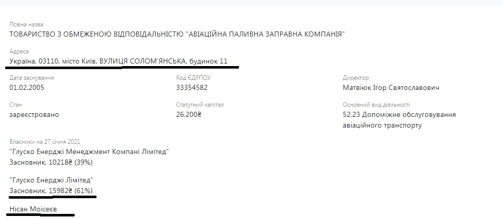 Владелец все тот же – Нисан Моисеев, адрес тоже одинаков во всех компаниях: Киев, улица Соломенская, 11.