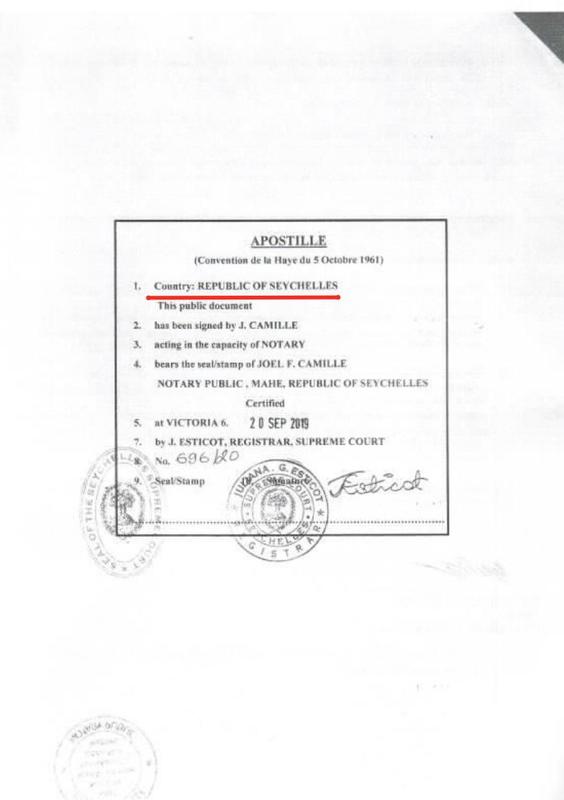 Кроме того, для проведения данного регистрационного действия в подтверждение полномочий заявителя государственным регистратором была принята нотариальная копия доверенности Компании «ЕЛЛИС ТРЕЙД ЭНД ФАЙНЕНС», зарегистрированной в стране Британские Виргинские острова, которая содержит апостиль страны Республки Сейшельские острова, а не страны Британские Виргинские острова, которая является страной резидентства компании «ЕЛЛИС ТРЕЙД ЭНД ФАЙНЕНС».