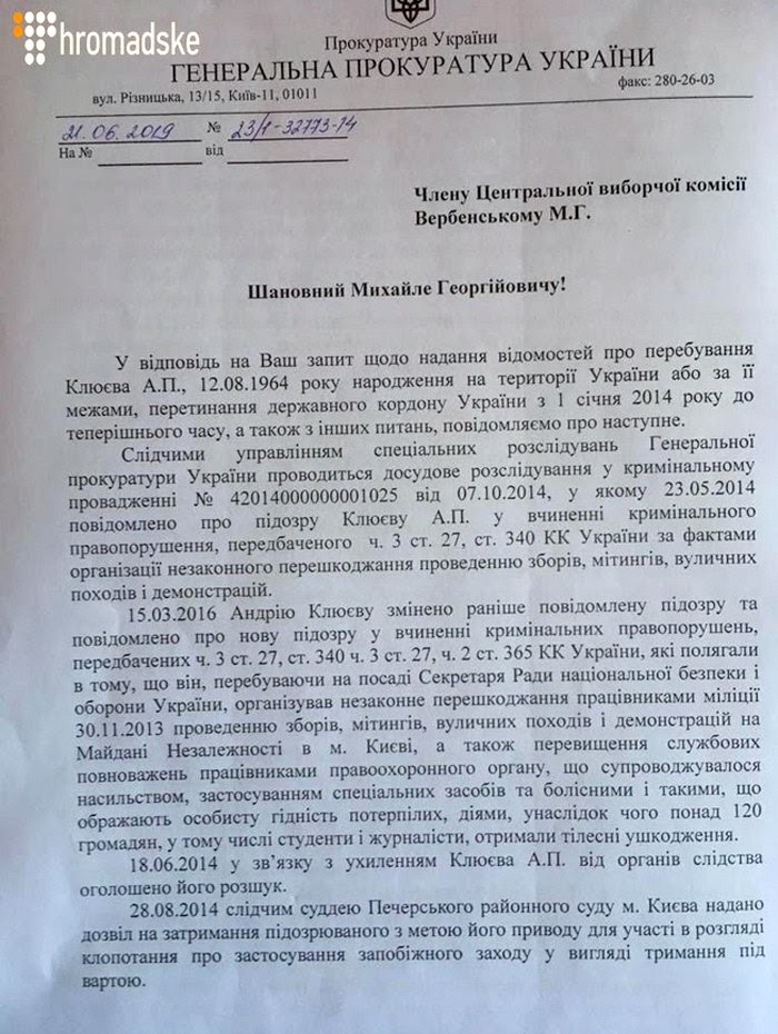 Нагадаємо, що ЦВК 2 липня 2019 (повторно за рішенням Верховного Суду) зареєструвала кандидата в народні депутати України Клюєва А.П., висунутого Ліберальною партією України в ОВО № 46, на позачергових виборах народних депутатів України. Третього липня 2019 року ЦВК скасувала реєстрацію Андрія Клюєва.