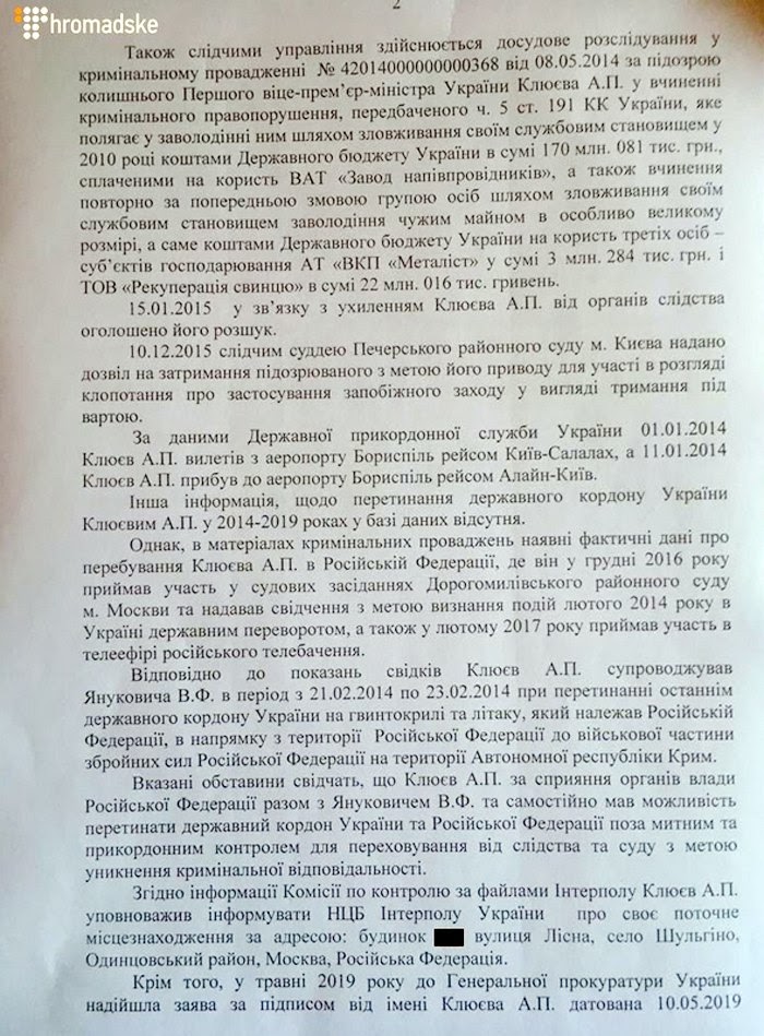 У лютому 2014 Андрій Клюєв утік з України і, за даними слідства, перебуває на території Росії.