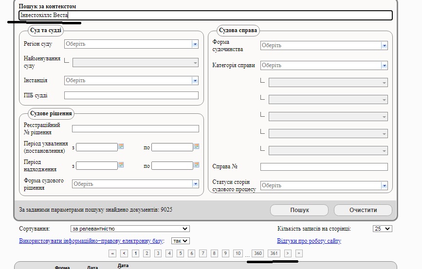 Если открыть Единый государственный реестр судебных решений Украины, то исков, связанных с «Инвестохиллс Веста», там насчитывается 361 страница!