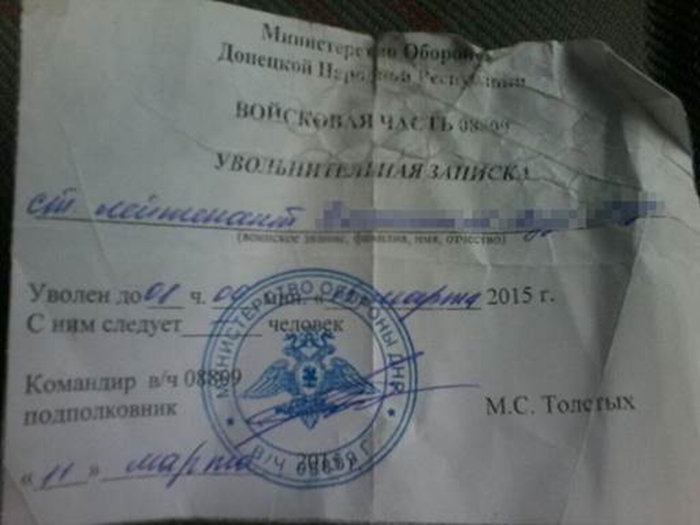 Співробітниками спецслужб під час обшуку затриманого було вилучено паспорт громадянина України та документи, які доводять його участь у бойових діях на боці терористів самопроголошеної «ДНР»: «Удостоверение личности старшого лейтенанта», довідка «міністерства оборони «ДНР», що засвідчує втрату «Академіком» у результаті бойових дій документів, які засвідчують його особу та «Увольнительную записку», підписану ватажком його терористичного угруповання.