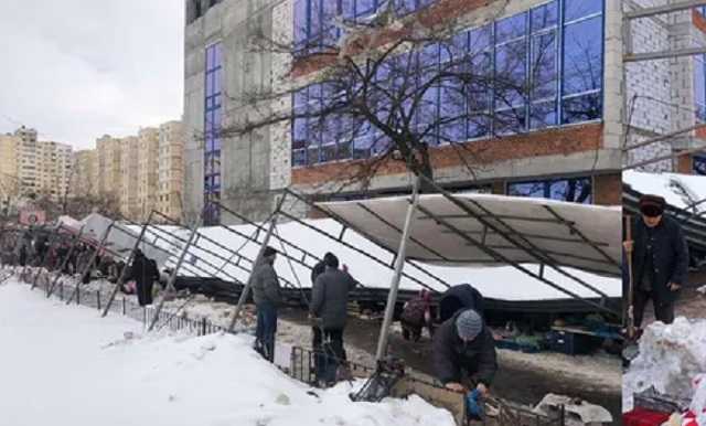 В Киеве в воскресенье, 21 февраля, возле станции метро "Героев Днепра" упал навес, накрыв под собой стихийных торговцев.