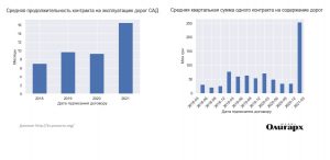 Вслед за строительством и ремонтом дорог под опеку “дорожного картеля” “Укравтодор” передает и эксплуатационное содержание. Происходит это привычным способом: через укрупнение контрактов в результате чего на них может претендовать только крупные “картелисты”. Для этого “Укравтодор” увеличил длительность каждого контракта в среднем в два раза: с 7-9 месяцев до 16 месяцев, свидетельствует анализ “ОЛИГАРХА”.
