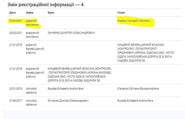 Согласно изменений в реестре, с 25 февраля, владельцем 50% доли в основной ТОВ "ЗТ-Інвес", которая владеет правами на ТМ "Цитрус", стал Геннадий Корбан.