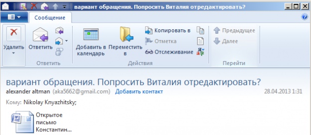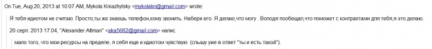 Милая деталь – в переписке есть письмо с резюме, которое Альтман отправил Княжицкому в день захвата телеканала. И письмо с текстом обращения Кагаловскому, которое должен был отредактировать некий Виталий, вероятно – ведущий телеканала ТВi Портников.