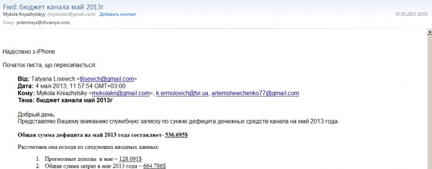 При этом, как свидетельствуют письма, он собирал оперативную информацию о структуре и финансовых планах канала. И отправлял ее, зачем-то, в приемную Давида Жвании. Туда же впоследствии будут пересылаться зарплатные ведомости, открытые вакансии, статьи в СМИ о канале. На протяжении двух месяцев Николай Княжицкий вникал в формирование новой структуры управления ТВi, творческие планы, запуски новых проектов. Практически все пересылалось Жвании на утверждение. В основном – финансовые планы.