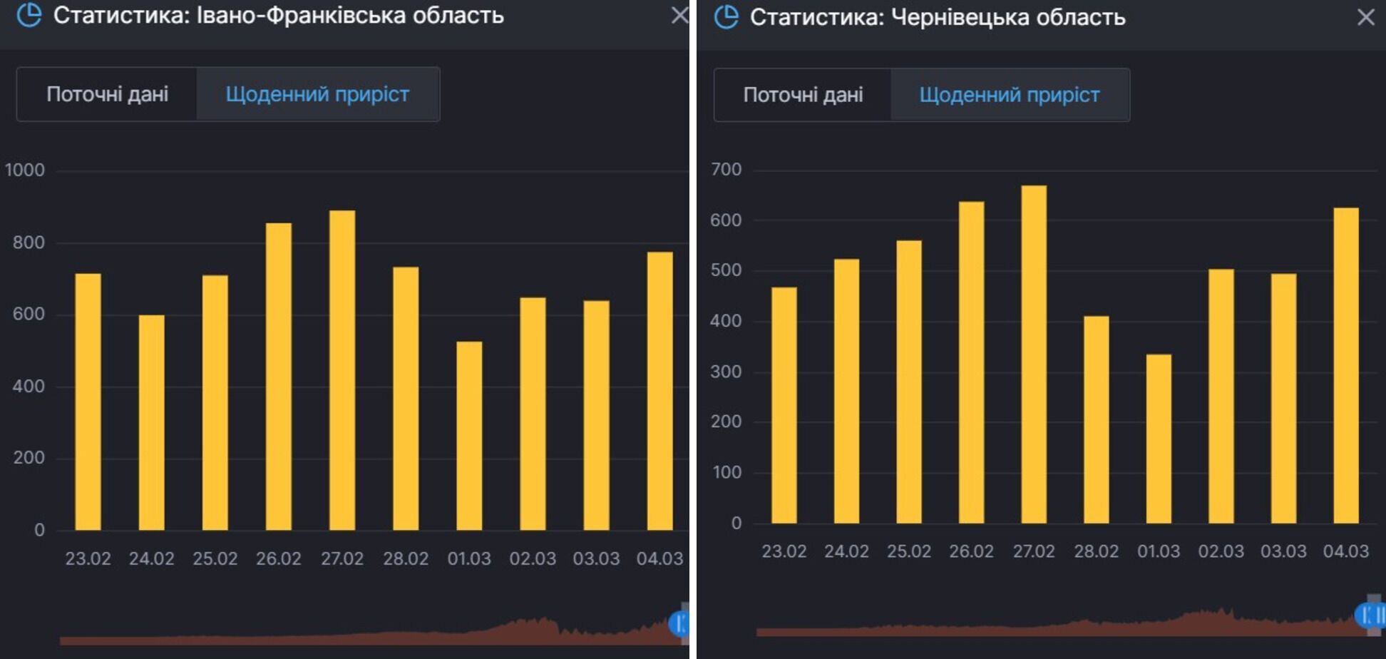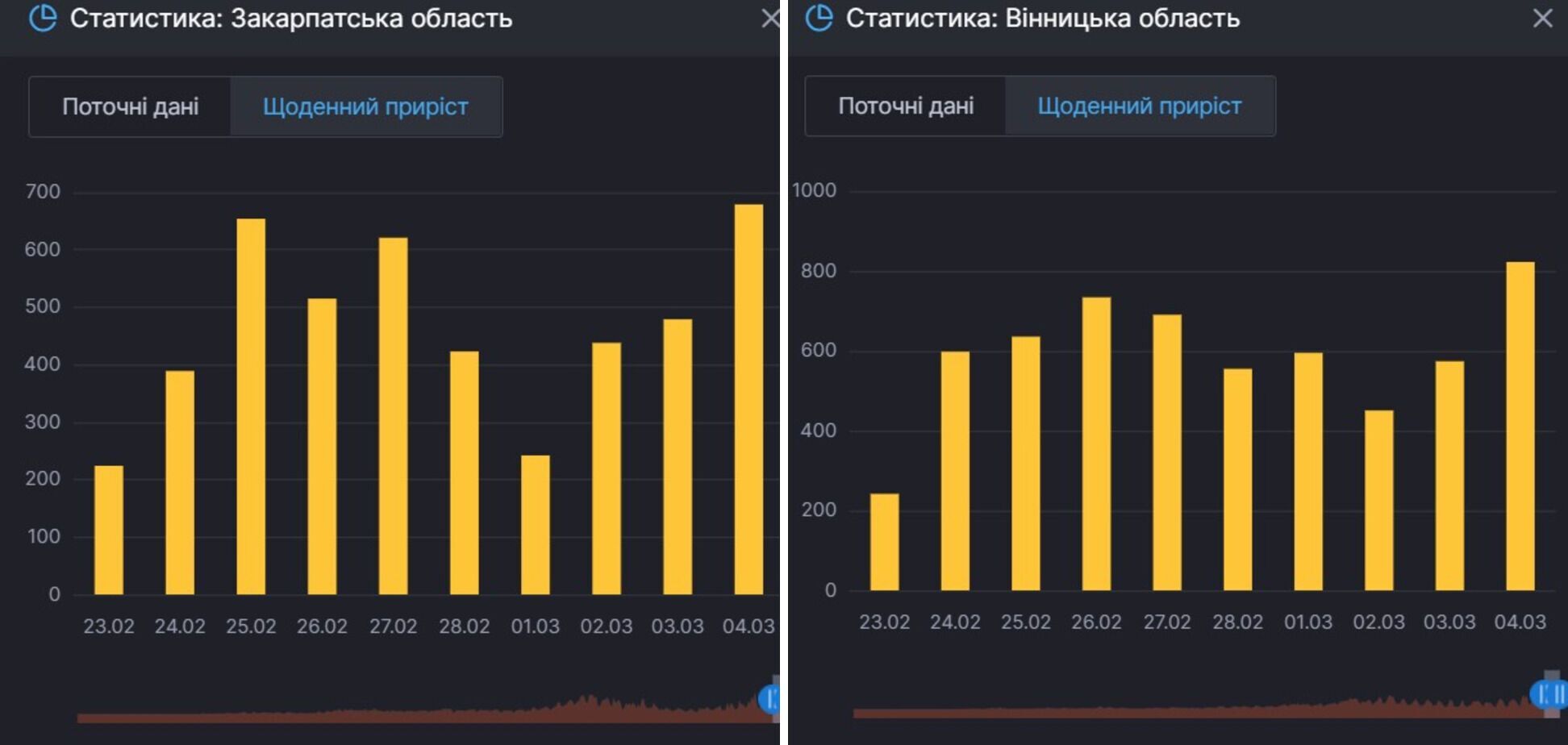 В общем еще в четырех областях и столице за прошедшие сутки выявили по более чем 600-800 новых заражений. Об этом свидетельствуют данные официальной статистики с сайта СНБО.