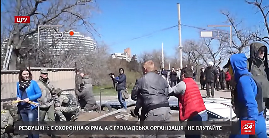 «У нас есть отделение ВОО «Автомайдан» в Одессе. Его возглавляет Виталий Устименко. Этот парень, в которого стреляли, имеет отношение к Евгению Резвушкину, который у нас в черном списке. С определенного момента они просто стали зарабатывать на рейдерских захватах, охране Труханова и прочем», – по крайней мере, так заявлял в 2018 году активист общественной организации «Автомайдан» Алексей Гриценко в комментарии BBC News Украина. Он добавил, что Резвушкин после Евромайдана создал местное общественное объединение и назвал его «Автомайдан Одесса». Комментировать пришлось стрельбу на улицах Одессы, когда был обстрелян автомобиль одного из «активистов» «Автомайдана». Резвушкин, само собой, заявил, что все это – «результат общественной деяетельности» «Автомайдана».