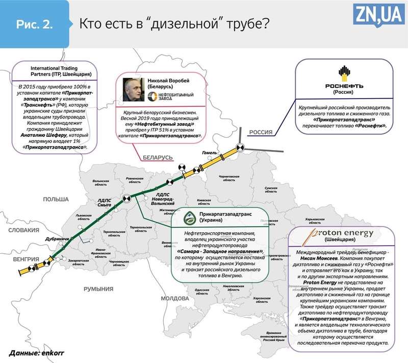 Как следует из опубликованных нынче расследований, то решение было действительно уникальным. Передаче в собственность Украины после развала СССР подлежали магистральные нефтепроводы, но в суде, по сути, было оспорено, что это магистральная труба. Якобы вследствие инвестиций от магистрального объекта ничего не осталось, а значит, он не подпадает под действие закона о разделе союзного имущества и принадлежит «Транснефти». Говорят, та давно хотела избавиться от украинского актива, в котором, как в черной дыре, пропадали тысячи тонн продукта. Оно и не удивительно, некоторые села в Западной Украине в 1990-х и нулевых жили исключительно за счет солярки из трубы, перевозя бочки и канистры с выкачанным продуктом на подводах с лошадьми. В 2015 году россияне продали актив швейцарской компании ITP Анатолия Шефера. Об этом человеке и его компании никто в отраслевых кругах раньше ничего не слышал, тем не менее с другой его компанией с созвучным названием ITC «Роснефть» подписала многолетний контракт на поставку 50 млн тонн дизельного топлива. И это, говорят источники, не тот объем, который пошел в Украину с 2016 года.