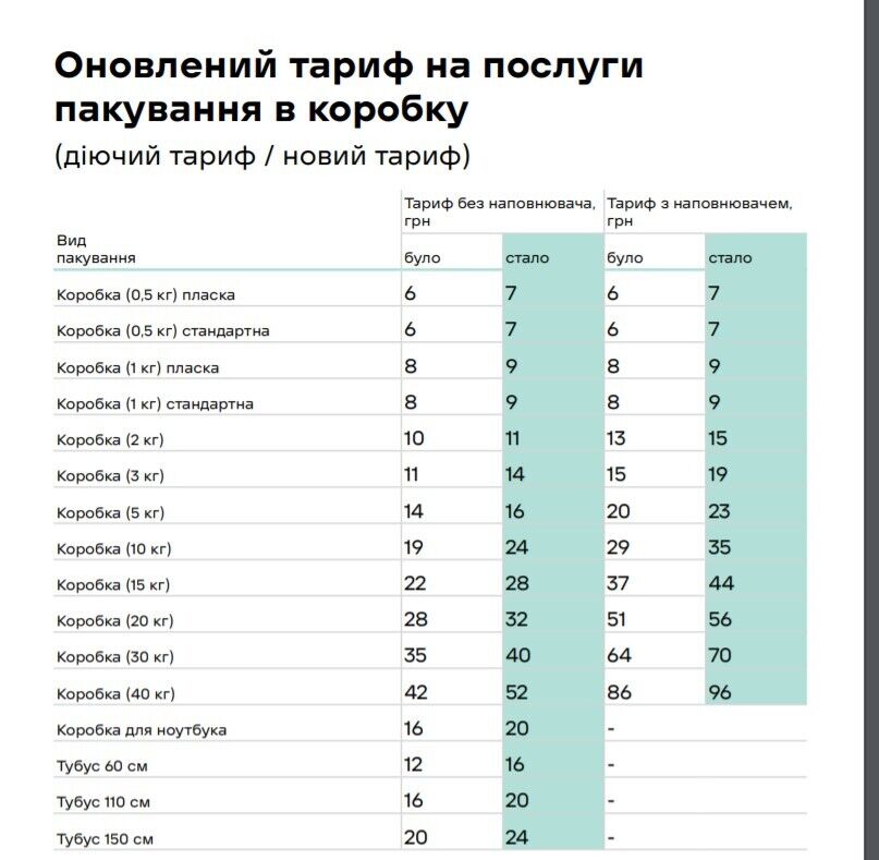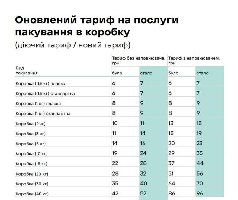 "Новая почта" с 20 марта повысила тарифы на все виды посылок. К примеру, отправка посылки весом с 20 до 30 кг подорожала с 105 до 110 грн.