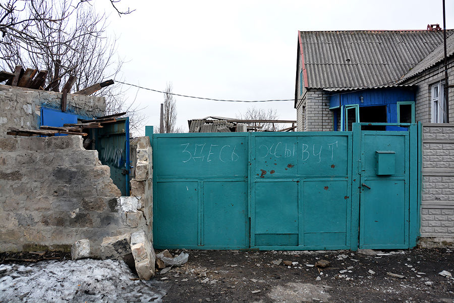 "Несмотря на царящий здесь успокоившийся ад, в ряде домов продолжали жить люди. Чаще встречались старики, которым то ли уехать было некуда, то ли пожить уже успели. Опасаясь, что солдаты полезут в их дома, оставшиеся в Дебальцево жители частного сектора берут в руки мел, и пишут на воротах ёмкую фразу: "Здесь живут"", - пишет автор репортажа.