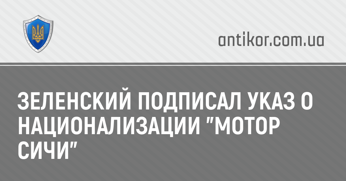 Президент Владимир Зеленский подписал указ о введении в действие решения Совета нацбезопасности и обороны о национализации предприятия "Мотор Сич".