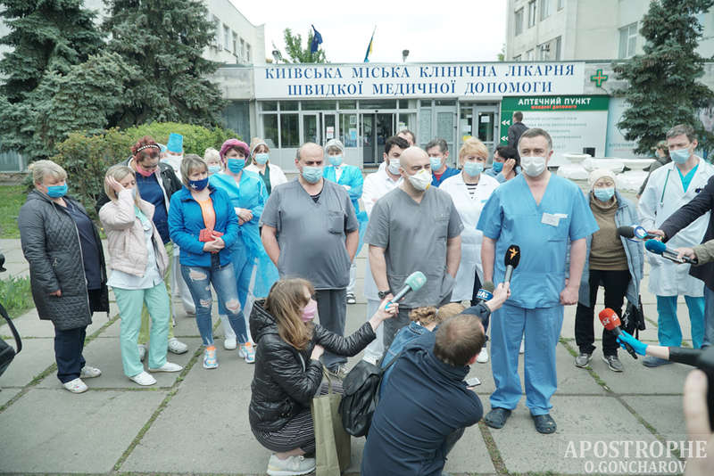 Врачи на акции протеста из-за невыплаты надбавок, 2020 год, Киев