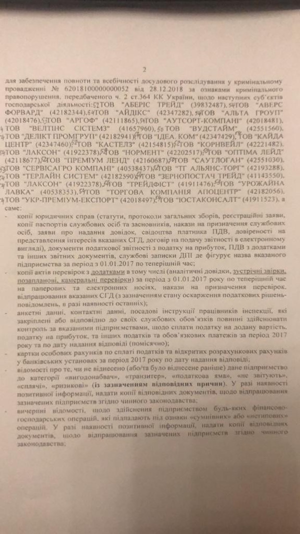 Есть и другое уголовное производство - № 62018100000000052 от 28.12.2018 г., в котором А. Кучеренко проходит как чиновник, осуществлявший прикрытие незаконной деятельности целого ряда компаний. Оно также не закрыто: