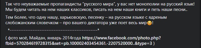 "Я, русскоязычный украинский националист, уверен, что мы должны приветствовать развитие нашего русского языка, на котором говорят миллионы украинцев , и давать ему возможность свободно развиваться.