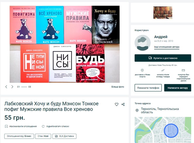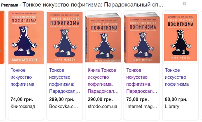 Наприклад, шукаємо бестселер «Тонкое искусство пофигизма: парадоксальный способ жить счастливо» від видавництва «Альпіна паблішер Україна».
