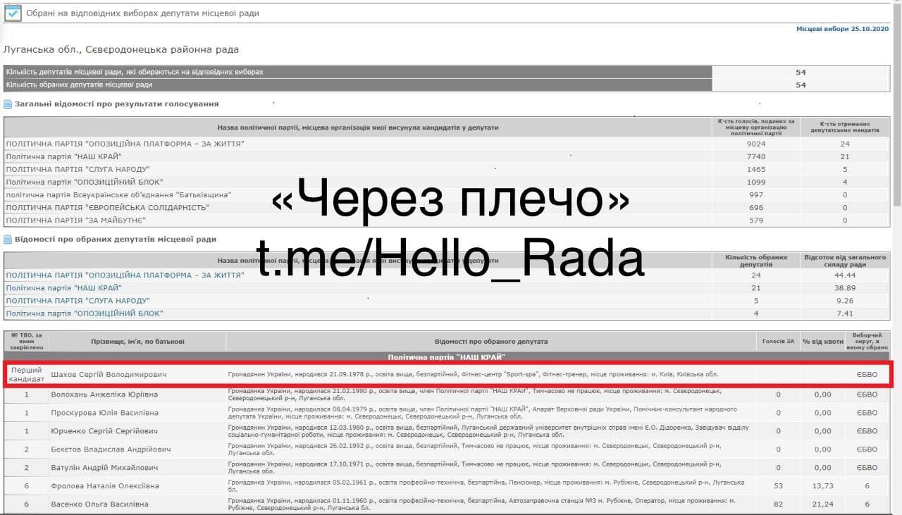 «Сергей Шахов из группы Довіра, хозяин партии «Наш край» в Луганской области.