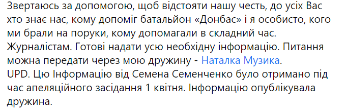 В сообщении указано, что эту информацию Семенченко передал во время апелляционного заседания 1 апреля. Так, бывший нардеп рассказал, что он был госпитализирован с диагнозом "мерцательная аритмия".