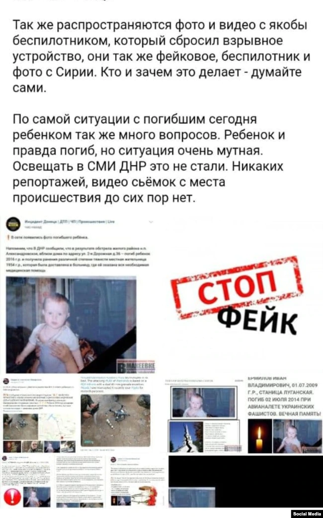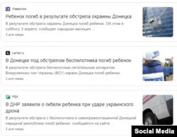 «Ребенок погиб из-за атаки украинского беспилотника», «Ребенок погиб в результате обстрела окраины Донецка», – гласят заголовки. Таким образом, там подчеркивают, что ситуация произошла именно в прифронтовом селе, а значит, «это украинская армия».
