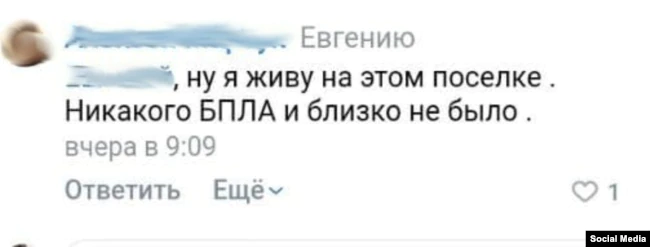 «Я живу в этом поселке. Никакого БПЛА и близко не было»