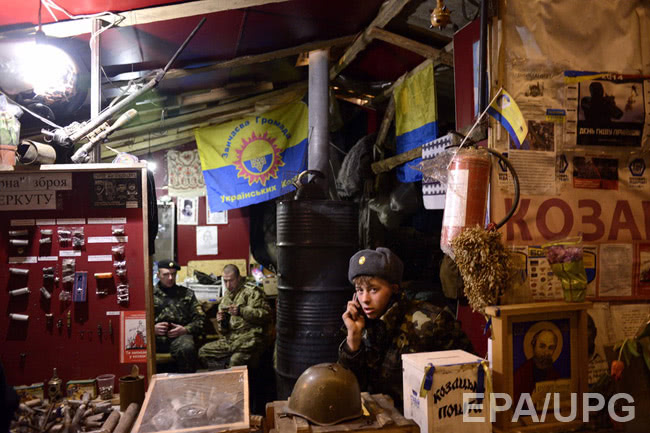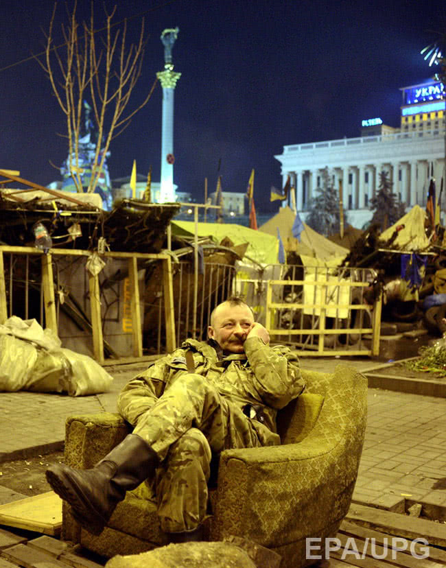 "Отам на Грушевського стояв один, причому з Донецька. Каже: мені ваша революція побоку, я хочу тільки мента вбити, - усміхається чоловік на прізвисько Бізон. - І от цей із Донецька став попереду на Грушевського, аби першим бути, як менти підуть. Тоді у нього вроді не вийшло. От тепер разом із нами чекає нових", - каже Бізон.