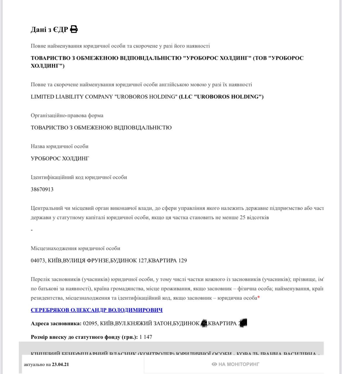 Примечательно, что об этом факте стало известно только в 2021 году, после того как вступили в силу законодательные изменения, обязывающие все ранее зарегистрированные юрлица подать госрегистратору информацию о конечном бенефициарном собственнике.