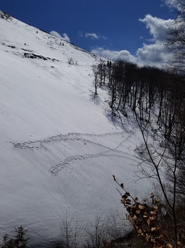 Затем спасатели разделились на три поисковые группы. Одна продолжала поиски на вырубке, вторая на восточном склоне, где снег частично растаял. Евгений еще с одним спасателем на снегоступах решили пройти траверсом все склоны примыкающие к вырубке по кромке леса.