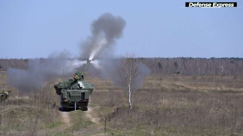 Украинские военные провели учения с использованием чешской самоходной артиллерийской установки Dana-M2.