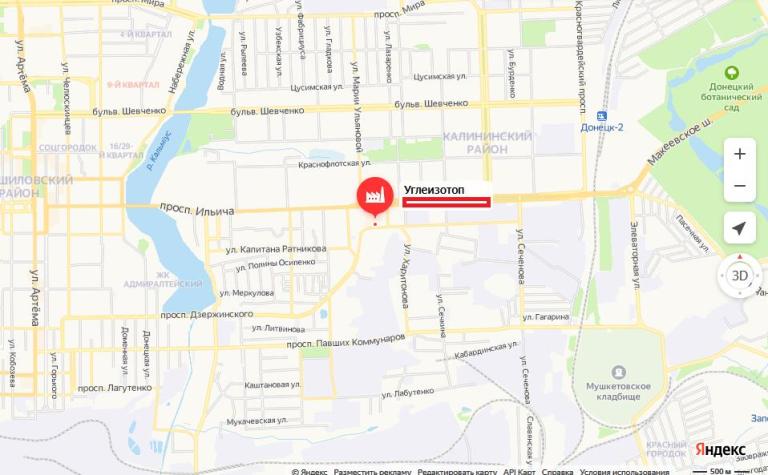 Это предприятие находится в центре Донецка, а точнее вот здесь