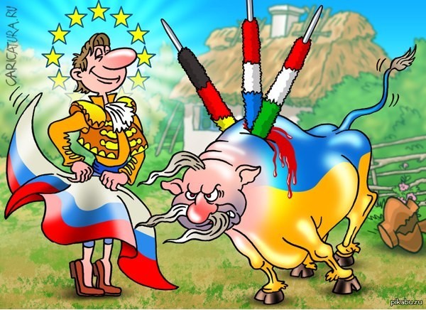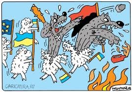 Так же в пропаганде адептов третьей империи сейчас раздаются упреки, мол, Украина - это вымышленный проект, а на самом деле за нами, украинцами, стоят наши хозяева-американцы и тому подобное. Эта сказка не нова. Например, есть карикатура, изображающая, что за украинцами стоят поляки и другие. А украинцы якобы не имеют осознания процесса собственного государства”.
