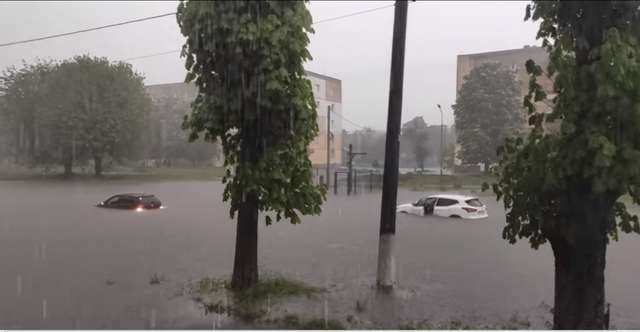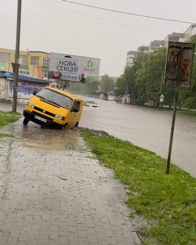 Непогода в Червонограде вызвала много бед. Припаркованные на улицах автомобили затопило почти на половину.