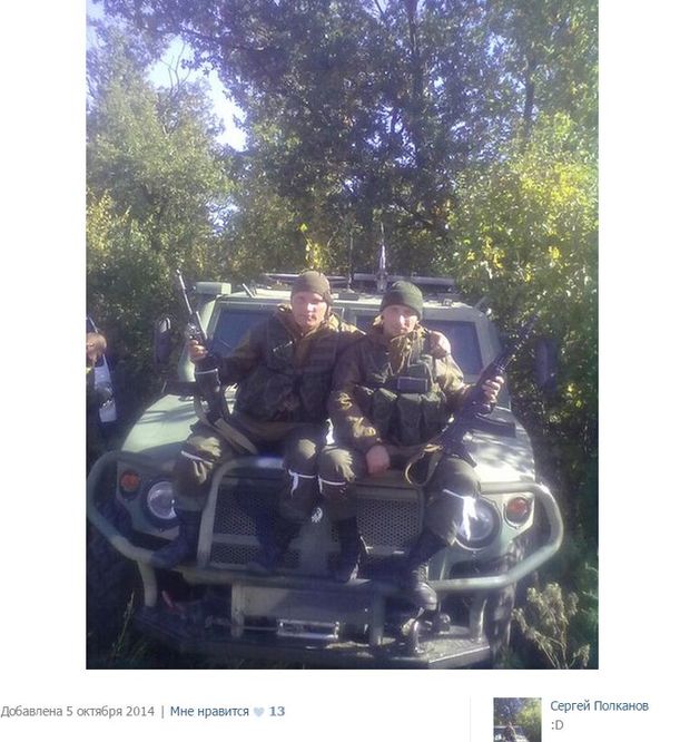 В фотоальбоме Полканова есть ряд снимков указывающих на его принадлежность к российско-террористическим войскам – уже привычные для нас фото на государственной границе Украины с РФ на фоне пограничной таблички, так же на фоне бронеавтомобиля "Тигр" без номерных знаков, в неуставной форме с белыми опознавательными повязками боевика "Новороссии".