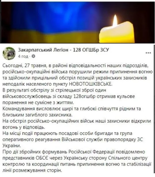 Трагедию подтвердила 128-ая отдельная горно-штурмовая бригада Вооруженных сил Украины Закарпатский Легион (смотри скрин).