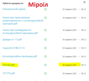В одному з цих тендерів фірма «Міроіл» припустилася помилки та випадково вже зараз оприлюднила свою тендерну пропозицію до проведення аукціону, призначеного на кінець червня. По закону цього робити не можна, аби всі на аукціоні були в рівних умовах.