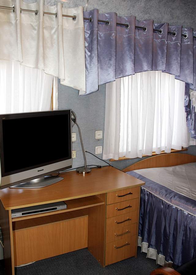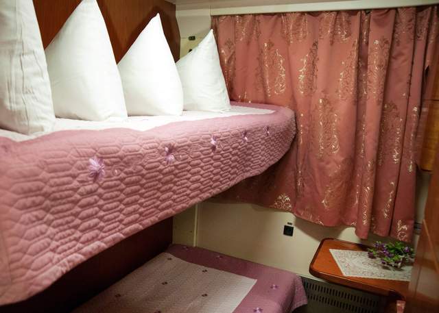 В спальном купе, кроме кровати, есть также письменный стол, шкаф для вещей и кондиционер. Кроме этого, для пассажиров обустроили и ванную комнату.