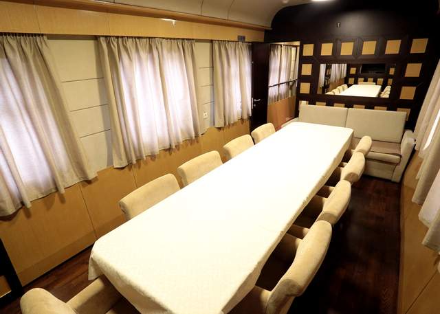 Всего в таких "гостиницах на колесах" есть от 5 до 11 спальных мест, а также места для совещаний. Для охраны и служебного персонала предусмотрены специальные купе.