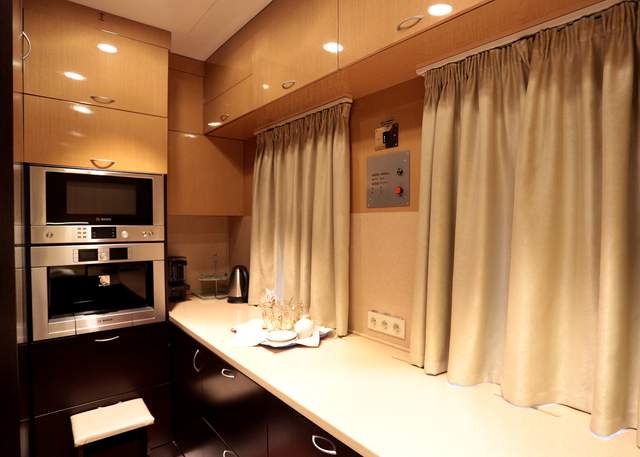 Как отметили в Укрзализныце, такие вагоны можно назвать "гостиницей на колесах". Ведь они оборудованы кухней, большим залом и просторным спальным купе.