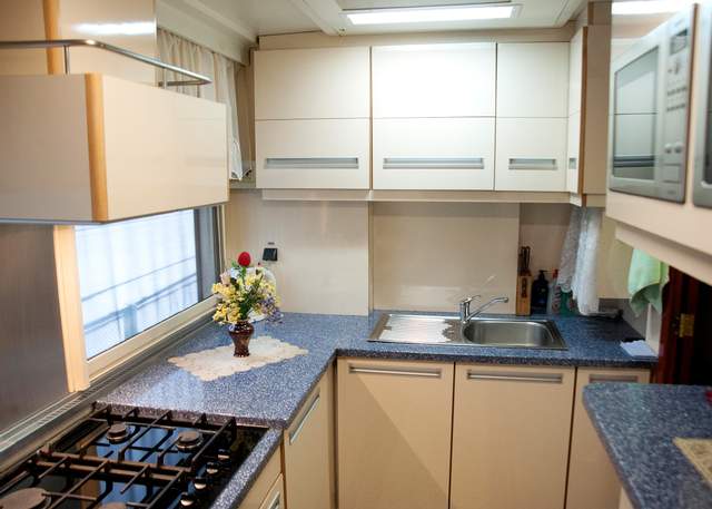 В кухне, например, есть холодильник, микроволновая печь и электрическая плита. В большом зале разместили мягкий уголок, компьютер, аудио- и видеотехнику.