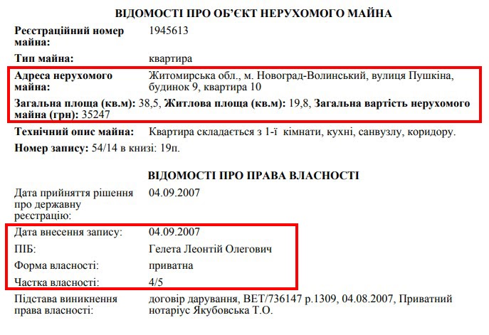 У Елены Ситайло и ее сына Леонтия есть небольшая квартира в Новограде-Волынском Житомирской области площадью 38,5 кв. м еще с 2007 года, которую им подарил отец судьи.
