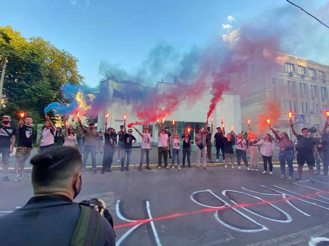 Кроме того, протестующие зажигали файеры и скандировали "Кто заказал Катю Гагдзюк" и "Аваков – черт". В руках митингующих были таблички с вопросом "Не надоело покрывать?"
