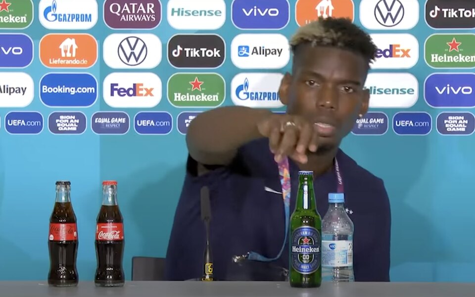 Ранее португалец Криштиану Роналду и итальянец Мануэль Локателли отодвигали от себя бутылки с Coca-Cola, а француз Поль Погба убрал пиво со стола.