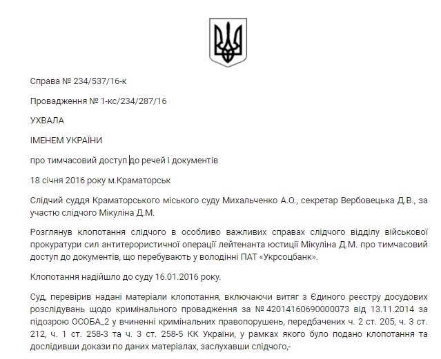 Зокрема у матеріалах справи № 234/537/16-к зазначається, що група осіб “вступили у злочинну змову з метою іншого сприяння діяльності представникам терористичної організації «ЛНР» шляхом надання їм допомоги у створенні конвертаційного центру на території Харківської області для подальшого безпідставного переказу грошових коштів <…>”.