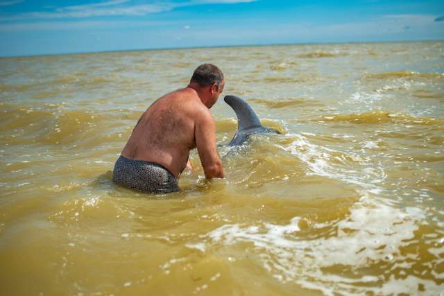 Местный житель также объяснил, что когда он приехал, то с дельфином уже были двое мужчин. Они провели с животным в воде больше часа.